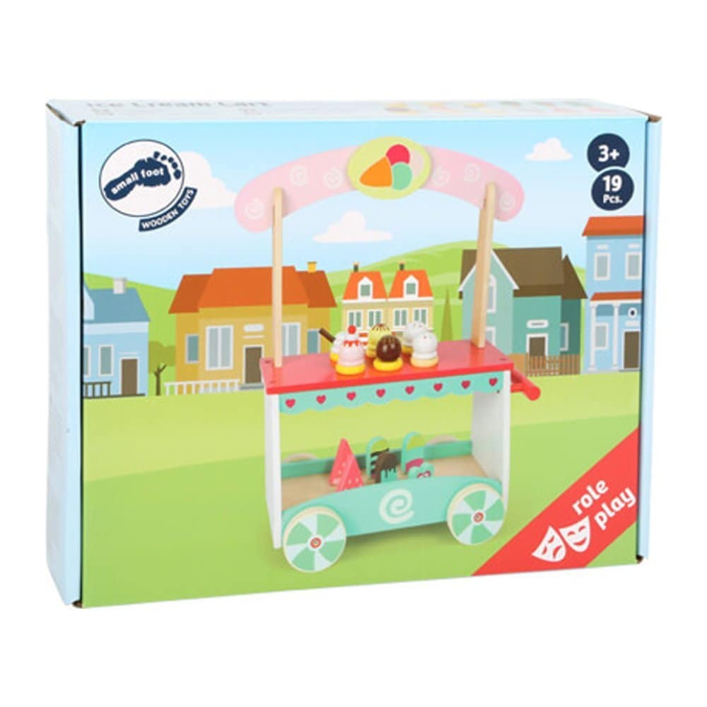 Ding-a-ling! Karroca e akullores po vjen! Me këtë karrocë akulloresh prej druri, fëmijët mund të prezantojnë 12 lloje të ndryshme akulloresh, në shkop ose në kon, dhe të krijojnë skena loje plot imagjinatë. Falë dorezave praktike dhe katër rrotave prej druri, karroca shtyhet lehtësisht drejt klientit të radhës.