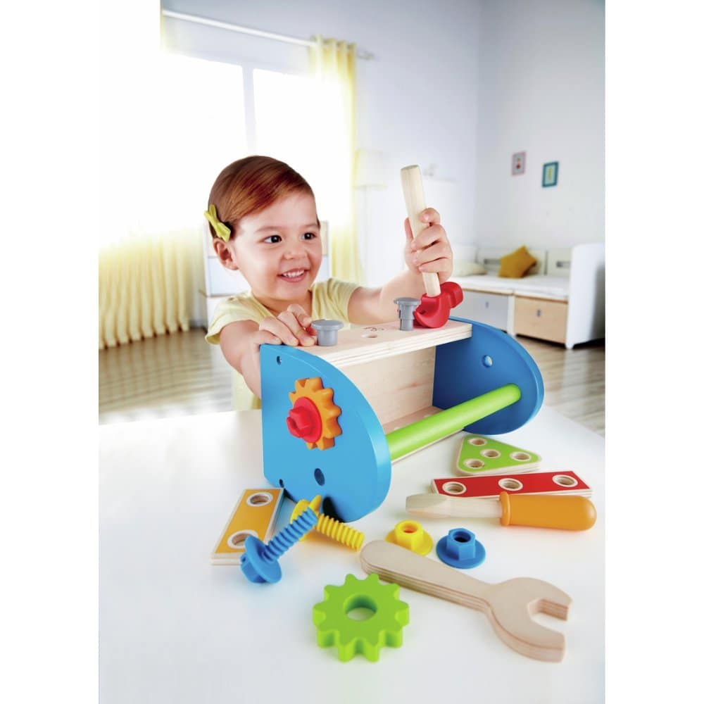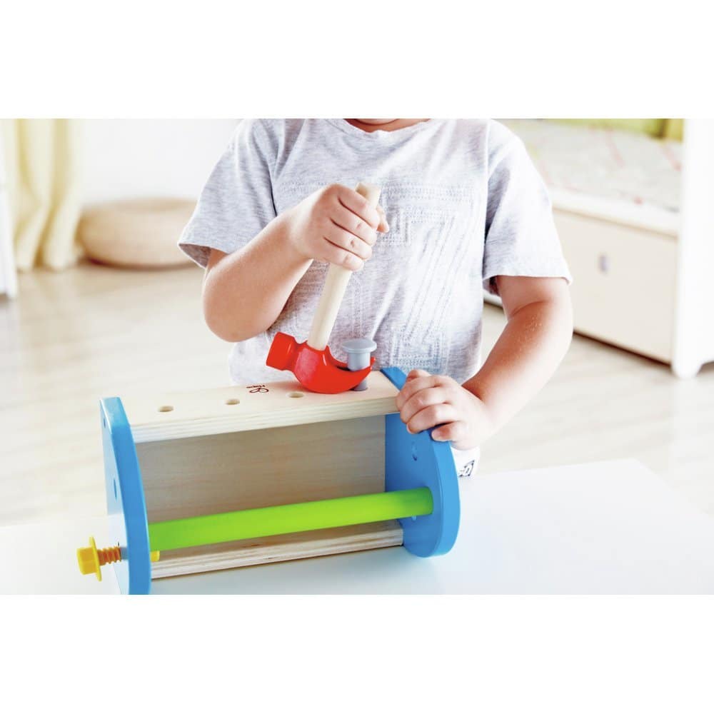 Përdorimi i veglave ndihmon në zhvillimin e motorikës fine, koordinimit sy-dorë dhe aftësive të zgjidhjes së problemeve. Materiali prej druri cilësor dhe përfundimet e sigurta e bëjnë këtë lodër të qëndrueshme dhe të përshtatshme për përdorim të përditshëm.
