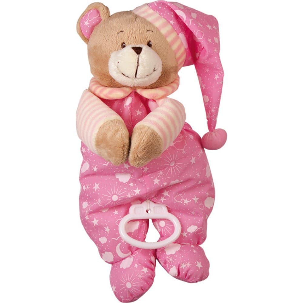 Lodër gjumi për bebe që sjell qetësi dhe ëndrra të ëmbla. Ari i butë i veshur me pizhame rozë luan ninullën e njohur “Natën e mirë, flej i qetë”, duke krijuar një ambient të sigurt dhe relaksues për fëmijën përpara gjumit.